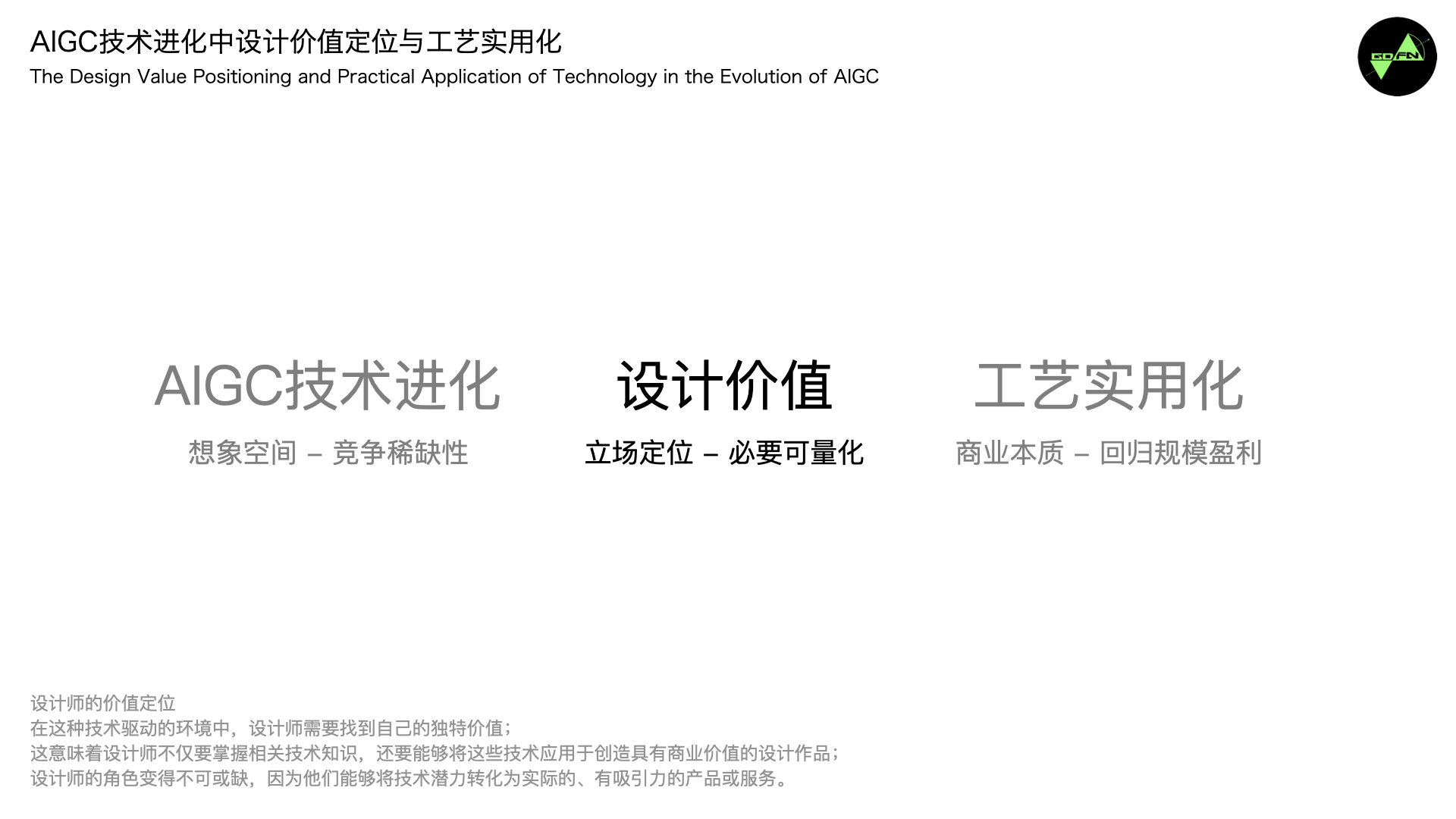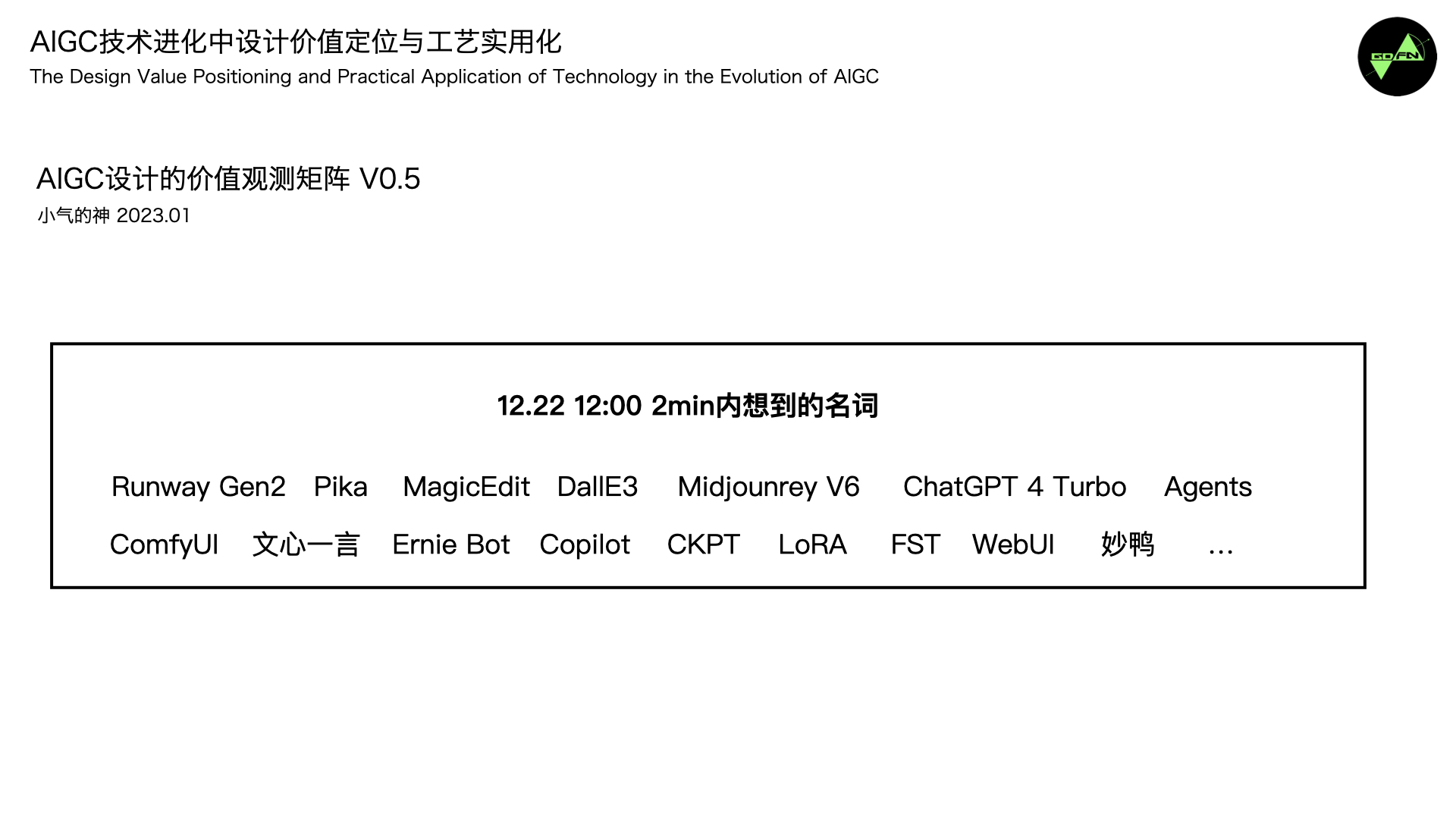 2个月前在团队我接到TOPIC征集,于是用Large Language Model创建了今天的主题《AIGC设计生产力的元年启示与实践》。 我有想过如何开始今天的分享会让自己感到轻松,那我们从一个视频开始吧,我个人蛮喜欢这个视频,它是这周由多个开源的Text To Video解决方案完成,整体合成工艺大概耗时30分钟。