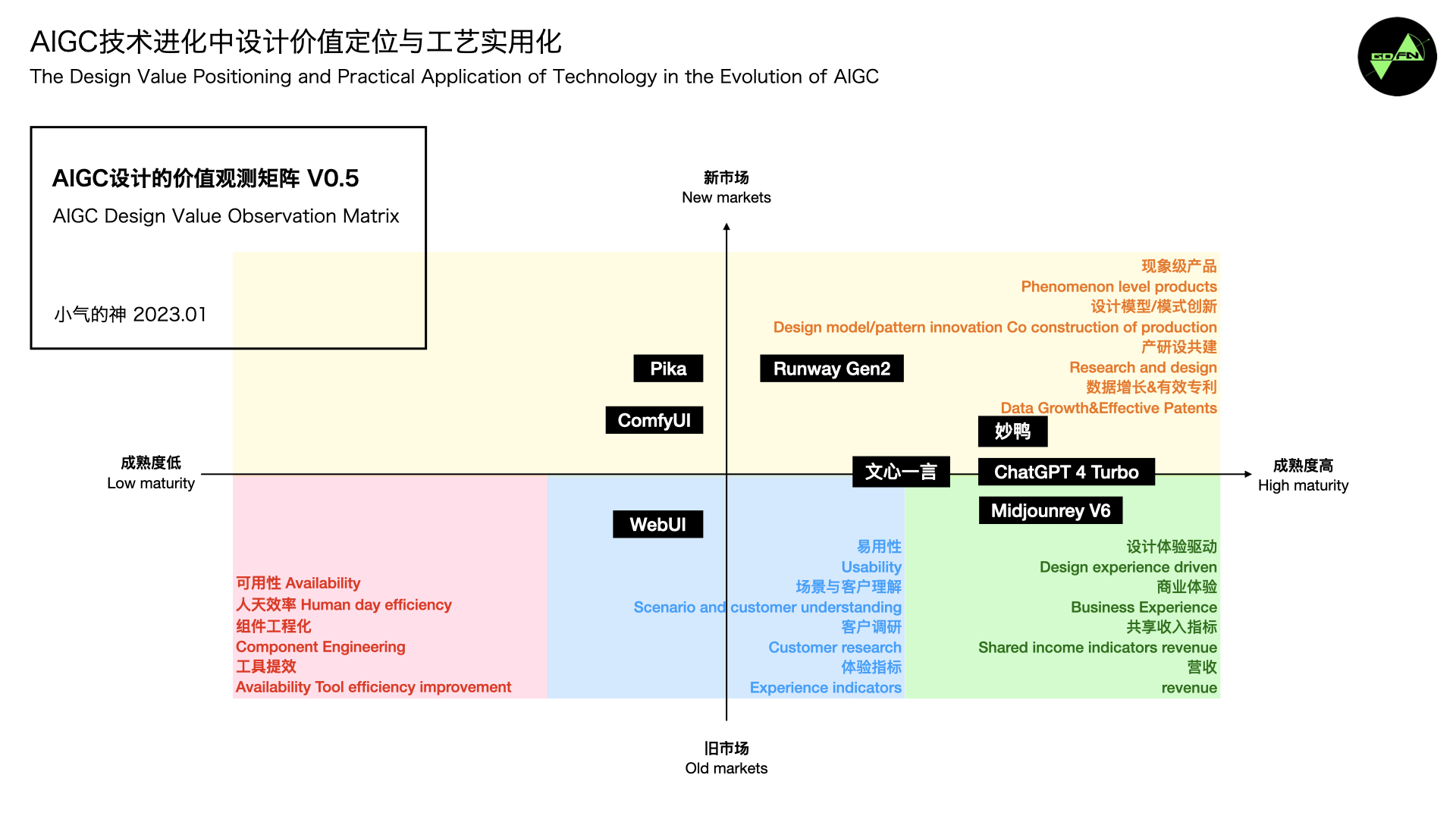 这两个概念是在17年开始进入AI设计领域时,会着重在对设计师发生影响模式。在传统设计中,用户可能不知道如何与新的技术或功能进行互动。如果界面的可供性不明确,用户可能会感到困惑和不知所措。另外,对于 AI 功能的集成,如果没有进行 AI Native 设计,可能会导致用户难以理解和利用这些功能,降低用户体验。 可供性(Affordance):指物体或界面的外部特征,表明它们如何使用或与之进行互动的能力。它是由美国心理学家 James J. Gibson 在20世纪60年代提出的概念,主要用于描述人与环境之间的交互关系。在界面设计中,可供性指的是设计元素的外观和交互特征,能够暗示用户应该如何使用它们。 AI Native(人工智能原生设计):是一种设计模式,旨在将 AI 技术无缝地融入用户界面和体验中。这意味着 AI 功能和交互不仅是简单地加入到现有设计中,而是以自然、无缝、直观的方式与用户交互,使用户感觉 AI 是一部分,而非外部附加功能。即设计师、创作者和用户能够充分利用 AIGC 技术的潜力,使其成为设计创意和生产力的自然延伸,而不是简单的附加功能。促进 AIGC 技术的有效应用,从而提高设计生产力和创造性。